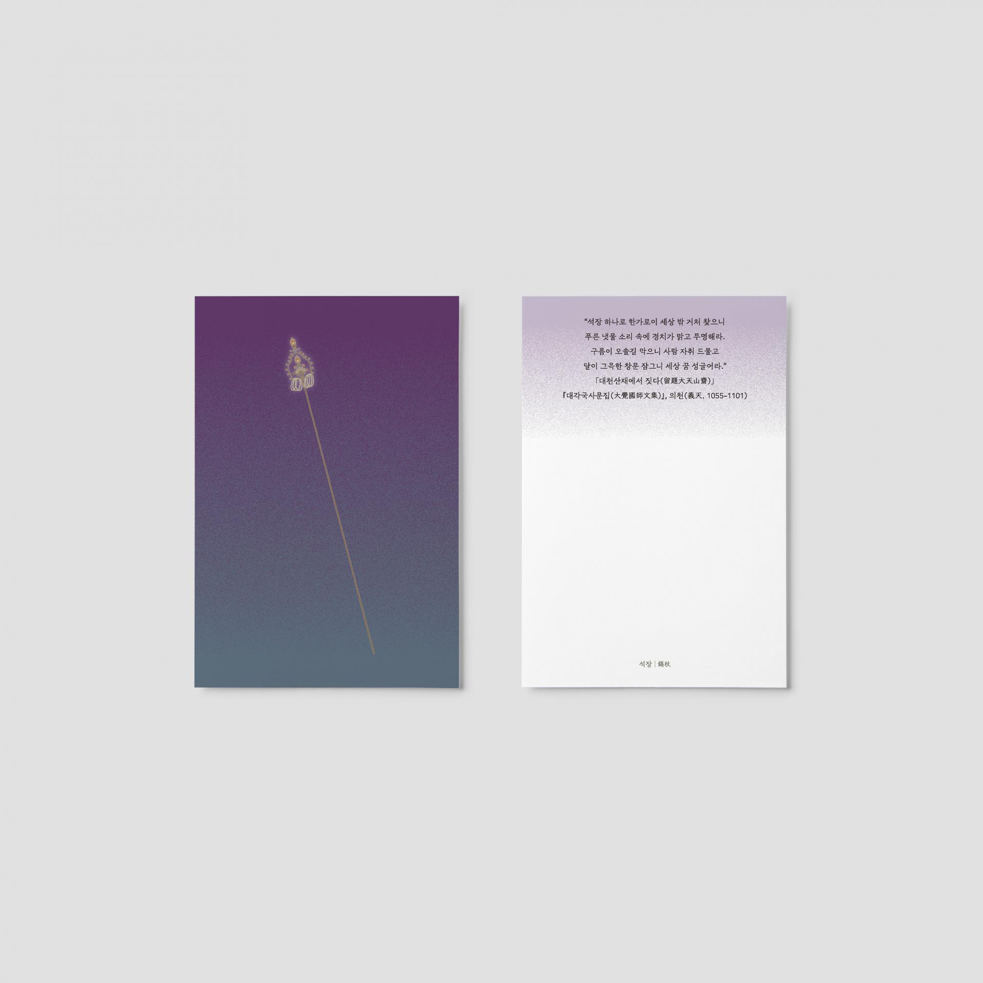 엽서 앞면에는 고려 불화의 도상 형태를 바탕으로 재해석한 일러스트레이션이 표현되고, 뒷면에는 그 의미와 관련된 경전이나 시 구절이 쓰여져 있습니다.